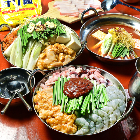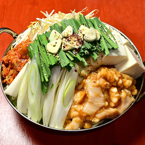 牛ホルモンと野菜を旨辛スープで煮込んだ、韓国の定番鍋料理。