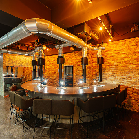 【少人数利用に◎】お一人様やデート利用にも最適なカウンター席をご用意。目の前で焼き上がるサムギョプサルの臨場感を楽しみながら、ゆっくりと自分のペースで食事ができる特等席。少人数でも気軽に立ち寄れる心地よい空間です。