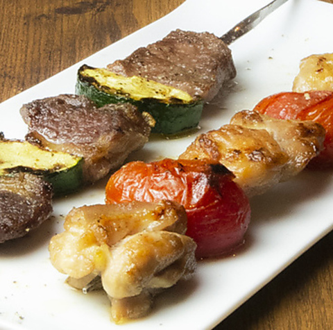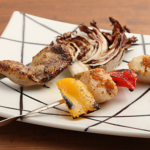 当店自慢の『備長炭 炭火串焼き』は身近な食材からこだわりの食材まで、新鮮な組み合わせをお愉しみいただけます。その他イタリアンをベースにした料理の数々を種類豊富にご用意しております。