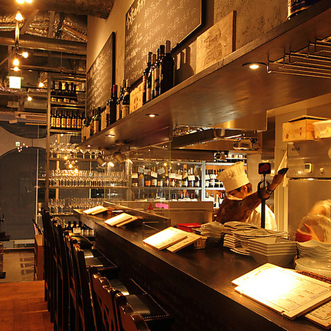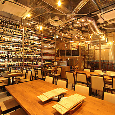 天井が高い店内にはガラス越しに通りを見渡せる開放感あるメインフロア、シェフの調理が目の前で楽しめるオープンキッチンカウンター席、ステップフロアの中二階席は店内を見渡せるソファー席、ちょっと特別な時間を過ごせる半個室やワイン倉庫のような席などどんなシーンでも楽しめる遊び心あるお席を完備しております!