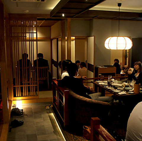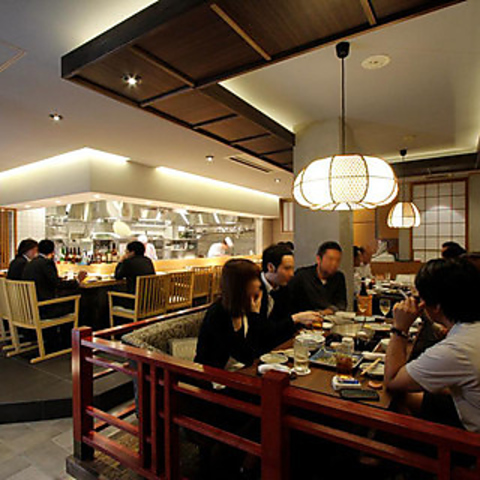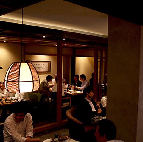 開放感あふれる店内には、優しげな灯かりがともり落ち着きのある空間を紡ぎます。カウンターやテーブル席、半個室タイプのお席をご用意。