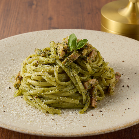 香り高いバジルソースに、海鮮を加えて仕上げたジェノベーゼ。魚介の旨みとハーブの爽快感が調和する、軽やかなパスタです。
