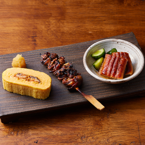 人気のうざく、うまき、肝串の3点を一度に堪能できる、当店おすすめの一品です◎