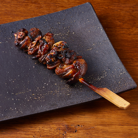 大山鶏の焼き鳥は、うなぎ屋ならではの特製タレがおすすめ。ジューシーな肉にコク深いタレが絡み、旨味が広がります。塩や葱味噌でもご提供しており、好みに合わせて味わいを選べます。