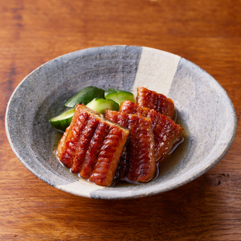 うな重が焼き上がるまでのひとときを彩る、当店おすすめ◎うなぎの前菜三種。さっぱりうざく、ふっくらうまき、香ばしい肝串を一度に味わえる贅沢な一皿です。単品注文よりお得で、日本酒やビールとも相性抜群。
