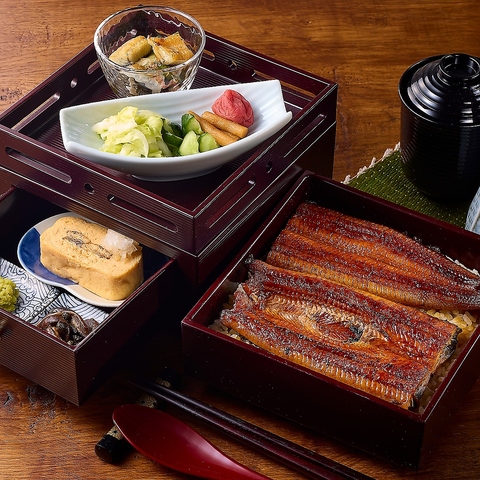 当店名物のうなぎ三段重は、ふたを開けた瞬間から楽しい三段構え。付け合わせや薬味で味の変化を重ね、最後の一口まで飽きさせません。蒸し焼きで仕上げたふっくら柔らかな鰻を、香りとともにご堪能ください。