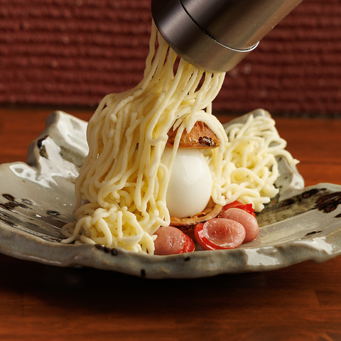 『恵比寿のポテサラ』は恵比寿店限定の人気メニューとなっております。専用の機械でお客様の目の前で仕上げる目で見て楽しい、食べて美味しい逸品です。ほんのり甘く口触りも良いポテトサラダは当店でしか召し上がることのできないおすすめの商品です。おこのみで、ブラックペッパーかのりたまを掛けお召し上がり頂けます♪