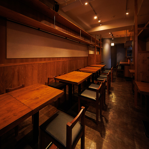 2~8名掛けのテーブル席は利用シーンに合わせてご利用頂けます。仕事仲間とのご宴会や、ご友人同士での飲み会、合コンや女子会など様々なシーンにおすすめです。ゆったりとした空間で楽しく会話やお食事をして頂けます。落ち着いた雰囲気で、大切な方との特別なひとときにも最適です。美味しい料理とお酒を是非ご堪能あれ!