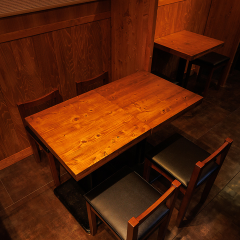 2名様から6名様までご利用可能なテーブル席は、人数やシーンに合わせてレイアウト変更も可能です。ゆったりとした空間で、会社宴会や歓送迎会、同窓会、ご友人との飲み会、合コンや女子会まで幅広く対応。周りを気にせず会話を楽しめる落ち着いた雰囲気で、美味しい料理と共に思い出に残るひとときをお過ごし頂けます。