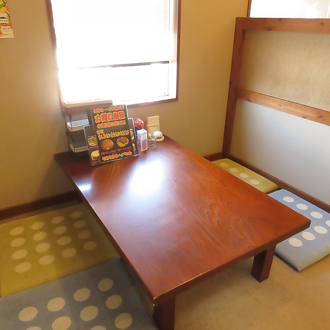 足元も寛げる4名様用のお座敷席。ゆったりとリラックスしながら過ごせるので、友人や家族など、少人数でのご利用に最適。お子様の様子も見やすいので、小さなお子様連れでのお食事にもオススメです!