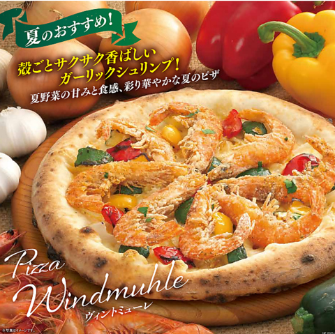 旬の食材をふんだんに使った季節限定メニュー♪夏は殻ごと食べれるザクザクガーリックシュリンプピザ!