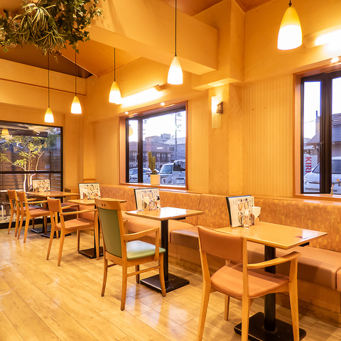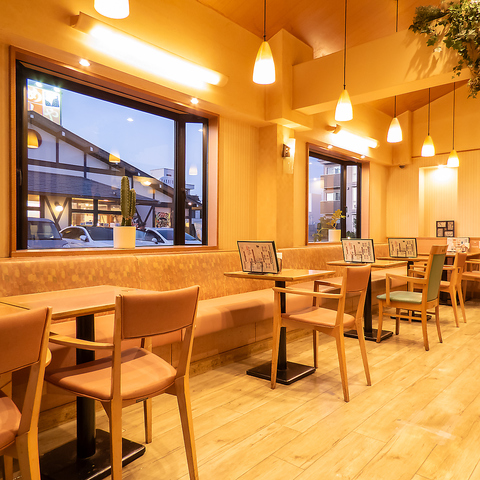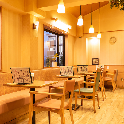 大人数の方にも対応できる22名様席をご用意しており、テーブル席は足元が楽で疲れにくい設計です。皆で食事をシェアしながら楽しむことができ、ワイワイと賑やかなひとときをお過ごし頂けます。また、季節限定の料理やスイーツ、日替わりモーニング等、多彩なメニューが揃っています。友人や家族との集まりにご利用下さい。