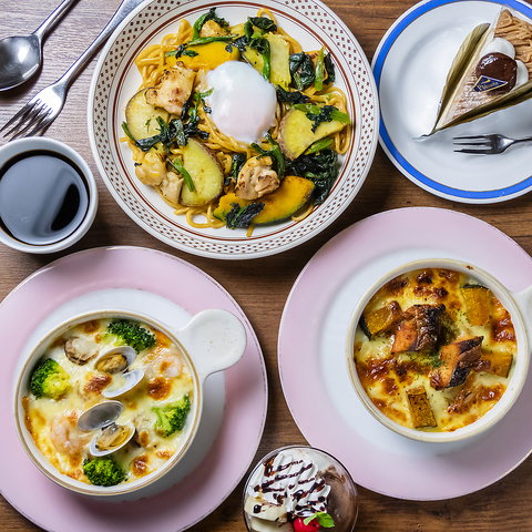 ドリアの楽しさが広がるメニューをご用意しています!魚介類をトッピングしたシーフードドリアや、ほんのりスパイシーな半熟卵のカレードリアが絶品◎旬の秋メニューには秋鮭を使ったおすすめドリアもご用意しています。ご注文を頂いてから焼き上げるので、熱々の美味しさをお楽しみいただけます!ドリンクとセットも可能◎心温まるひとときを♪