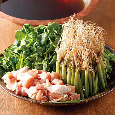 せりは根っこが一番うまい。 風味豊かなせりの香り。 シャキシャキとした歯応え。 旬菜と鶏肉の旨味が相まってくつくつ音を立てたなら、 絶品せり鍋のできあがり。 ※写真は五人前です。 ※一人前より承ります。 ※根付きは3月下旬まで、以降は水耕(根なし)のセリとなります。