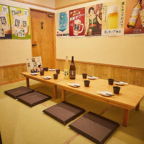 移動可能で2名様からご利用頂けます♪靴を脱いでゆったり過ごせる座敷席が人気です。仲間と肩を並べて会話が弾む時間をお過ごしいただけます。送別会・歓迎会にも最適です。
