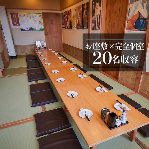 | お座敷個室 | 26名様×1 | 【12名~26名様・畳×お座敷×完全個室】畳の温もりに包まれた落ち着いた空間で、会社宴会や仕事終わりの飲み会、地元のお集まりに最適です。靴を脱いでゆったり寛げるため、ご家族同士のお食事にもぴったり。大人数でも一体感のある時間を楽しめる、居心地の良い空間です。 |