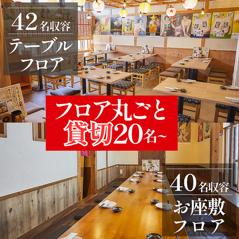 | 貸切 | 42名様×1 | 【フロア丸ごと貸切20名~】フロアをまるごと貸切可能で、周りを気にせず安心して楽しめます!人数は20名様から最大50名様近くまで対応できますので、会社宴会や打ち上げ、イベントのオフ会、結婚式2、3次会にも最適です。コースも3500円~ご予算に応じてご用意してます。さらに幹事様無料特典もあり!クーポン欄をCHECK★ |