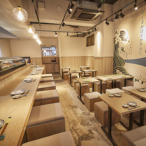 清潔感あふれるカウンターやテーブル席は、自然と会話がはずむ温もりある雰囲気。仕事終わりの飲み会や、気の合う仲間との語らいにもぴったり。肩の力を抜いて、ゆったり過ごせる店内です。