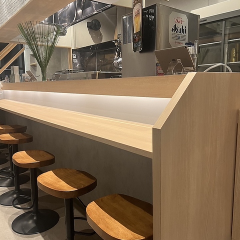 【カウンター席もあり】お一人様のサク飲みにもおすすめ!調理風景を間近で楽しむことができるのが魅力です!木の温もりを感じるインテリアが心地よさを演出し、ゆったりとしたひとときをお過ごしいただけます☆お酒に合うお料理も充実しています!