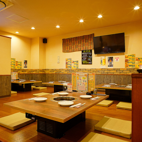 靴を脱いで寛げるお座敷席は最大20名様までの宴会も可能です。【鹿児島 中央駅 焼肉 肉 宴会 家族 ランチ 黒毛和牛 黒豚 ビール】