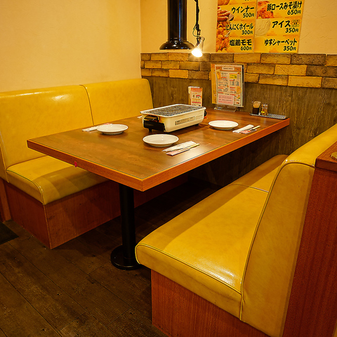 テーブル席は座り心地の良いソファ。世代を問わず、ご家族でのご利用にオススメです!【鹿児島 中央駅 焼肉 肉 宴会 家族 ランチ 黒毛和牛 黒豚 ビール】