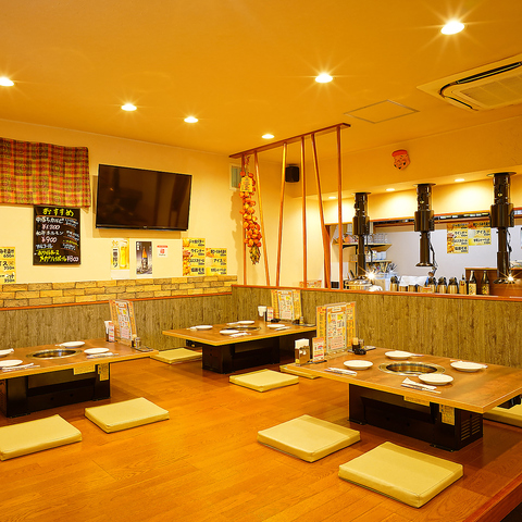 靴を脱いで寛げるお座敷席は最大20名様までの宴会も可能です。【鹿児島 中央駅 焼肉 肉 宴会 家族 ランチ 黒毛和牛 黒豚 ビール】