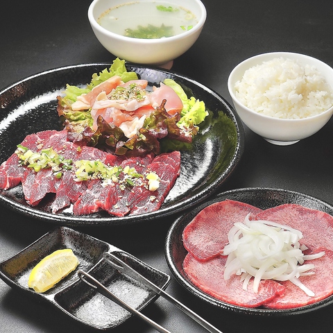 お得な「れんが亭ランチセット」は、3種類のお肉の他、ご飯・スープ・サラダ・キムチが楽しめる内容です!