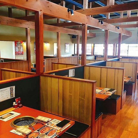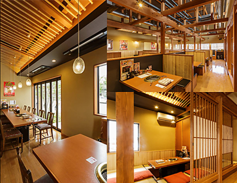 【おしゃれな空間でお食事】清潔感あふれるおしゃれな店内は、BOXタイプのテーブル席と掘りごたつ席を完備。全面禁煙のため、お子様連れのお客様にも安心です。広々とした132席のスペースは、家族や友人とゆったりとした食事を楽しむのに最適です。駐車場も完備しているので、お車でのアクセスも便利です。
