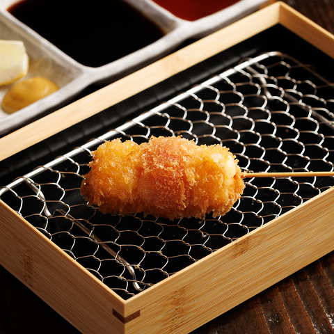 3種類のパン粉を混ぜ合わせ、牛や豚の油を素材によって使い分けて揚げるたぬきオリジナルの串カツはサクサクの食感が魅力です♪厳選された豚肉、鶏肉、エビ、そして旬の野菜など様々な食材を使用し種類豊富に取り揃えております!串揚げに合うお酒も多数ご用意!つい頼みすぎてしまう美味しさです◎