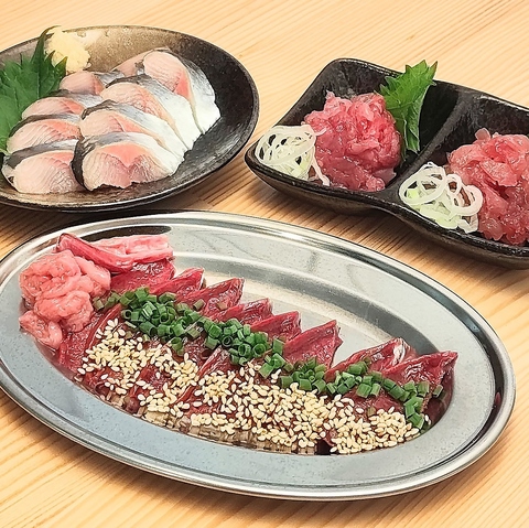 刺身やおつまみだけではなく馬肉だって提供してしまうのが日本酒STATION!3点盛りでもりだくさんの馬肉と日本酒とまりませんね。エンドレスでお酒が進んじゃいます♪食べ比べもしつつゆっくり素敵なひとときをお過ごしください♪