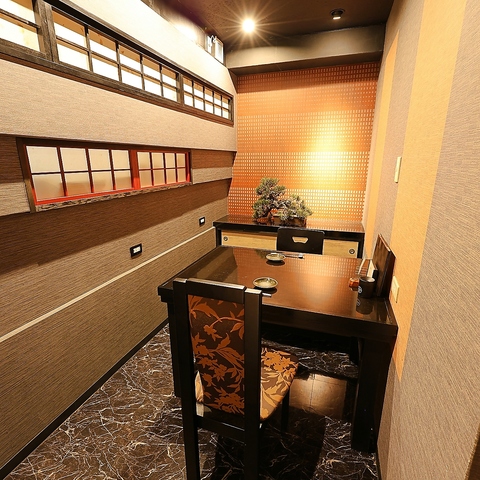 落ち着いた雰囲気の完全個室は、デートや友人とのお食事に最適。プライベート空間で心ゆくまで特別な時間を