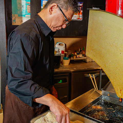 当店の串揚げは、すべて手仕込み。旬の素材を丁寧に下ごしらえし、ネタごとに最適な衣と揚げ時間を見極めて、最高のひとくちに仕上げます。五感で楽しむ、こだわりの一本をぜひご賞味ください。