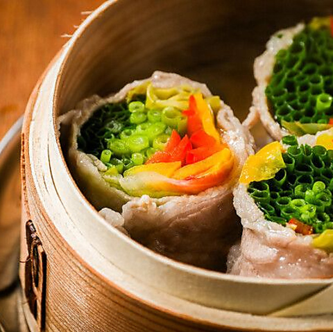 沖縄が誇る希少な島豚「アグー豚」を味わう、当店自慢の蒸ししゃぶ。蒸籠でじっくり火を入れることで余分な脂を落とし、アグー豚ならではの旨味と脂の甘みをぎゅっと閉じ込めました。たっぷりの野菜と一緒に包んで頬張れば、軽やかなのに満足感たっぷり。食材の美味しさを存分に楽しめる看板料理です。