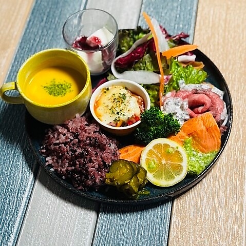 自分の“ちょっといい日”に、そっと寄り添う特製プレート。ローストビーフは5時間じっくり低温調理。とろけるやわらかさと、自家製トリュフソースの深い香りがたまりません。その他にもプレートに並ぶ色とりどりの副菜は美しいだけではなく体にも優しい新鮮な食材を使用。ご自身へのご褒美のお食事にぜひ。