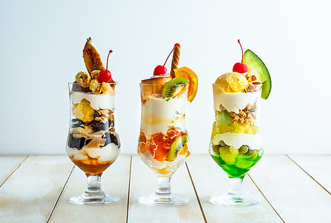 鎌倉の古き良き町並みにある喫茶店で提供されるパフェをイメージしております。どこか懐かしい味わいと季節を感じるフルーツなどが盛り沢山入った昭和レトロな海街パフェ。夜パフェとしてディナーのお時間帯でも楽しめます。夕暮れ時の鎌倉でひと時の甘い余韻をお楽しみください。キュートでフォトジェニックな見た目も魅力♪