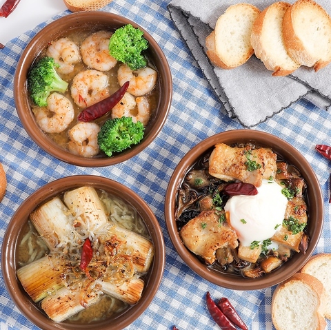 熱々のアヒージョは宴会にぴったり!香ばしい風味で会話も弾む人気メニューです♪