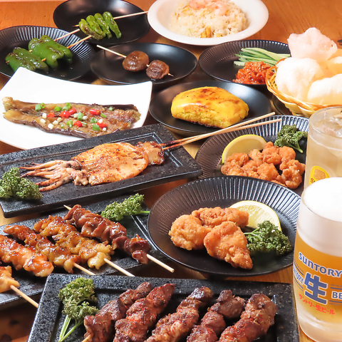前菜5品、春巻、焼き餃子、串焼き5種盛り、フライドポテト、手羽先の唐揚げ、えびチャーハン、杏仁豆腐の8品のお料理が楽しめる贅沢コースをご用意。嬉しい2H飲み放題付★お料理のみ4,400円(税込)でのご対応も可能です◎