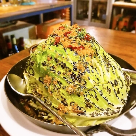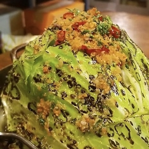 新鮮なキャベツをじっくりとグリルし、アンチョビとガーリックの風味が絶妙に絡み合います。ヘルシーでシンプルながらも素材の持つ旨味を引き出し、香ばしさと塩気のバランスが絶妙。ワインを片手にご堪能いただける、人気の一品です。