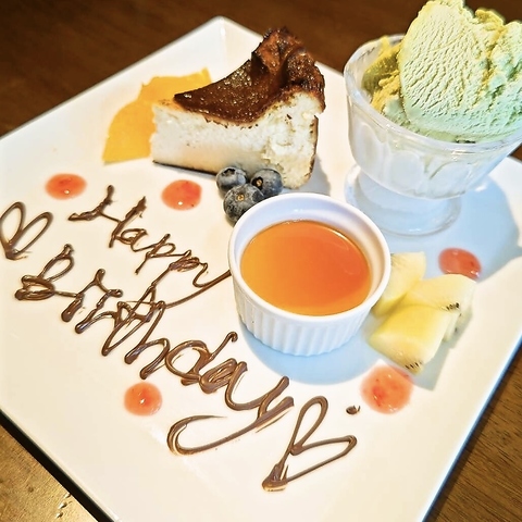 ネットからご予約のお客様にはメッセージプレートをサービス!誕生日や記念日など特別な日を大切にしたい方にはぴったり。思い出に残る大切な一日を、キャトルプレジールがお手伝いします。詳細はクーポンをチェック♪