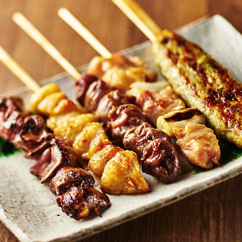 新鮮な国産鶏を厳選!肉厚で食べ応えもしっかりあり、ジューシーな旨みが絶品の焼き鳥です!特製のタレか塩かお選びいただけます!飲み放題付きコースはもちろん、食べ放題コースにもご用意ございます!