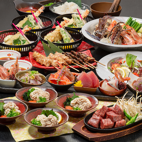 ご宴会やプライベートシーンなど様々なシーンでご利用可能な飲み放題付きコース!5000円~ご用意しております!自慢の海鮮や串焼き鍋などなどコスパ大充実のラインナップです!
