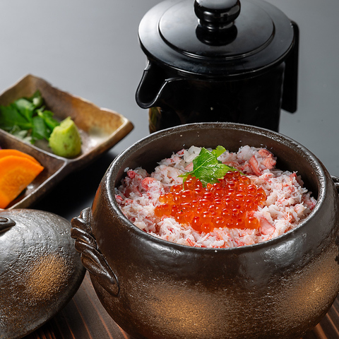 シメにもメインにもなる土鍋ご飯。ふっくらツヤツヤな米と海鮮や肉とのハーモニーをお楽しみください!