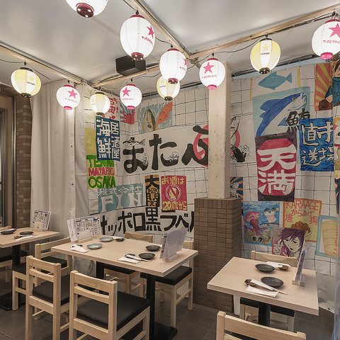 4名様でお使い頂けるテーブル席は、4席ご用意致しております。テーブルレイアウトを変更することで、最大16名様までご活用可能!仕事帰りの一杯に、同僚と、気軽にお立ち寄りください。