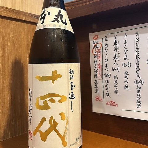 日本酒好きの方必見!幻の日本酒(十四代)入荷しました!とても飲みやすく、どなたでも美味しく飲んでいただけるお酒です!美味しいお魚やお料理とも相性抜群です!他にも、季節に合わせた美味しいお酒沢山ご用意しております!ご予約、ご来店お待ちしております。