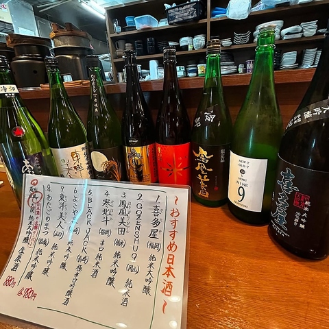 当店では、旬の海の幸と相性抜群の日本酒を、全国各地から厳選して取り揃えております。辛口からフルーティーな味わいまで、酒蔵の想いが詰まった銘酒を常時多数ご用意。料理の味を引き立てる一杯を、スタッフがお好みに合わせてご提案いたします。魚の旨みと日本酒の深い余韻が織りなす至福のひとときを、心ゆくまでご堪能ください。