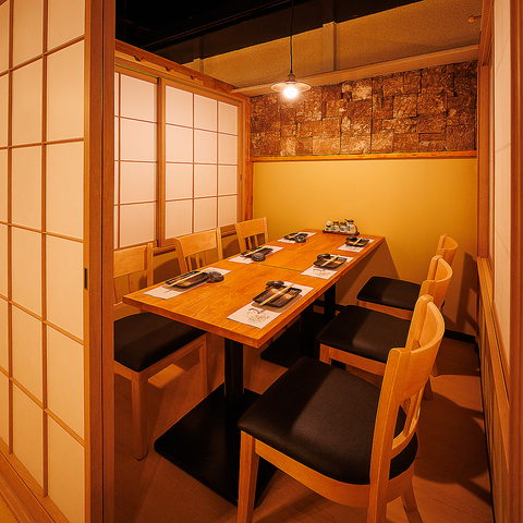 落ち着いた雰囲気の個室空間は、2名様からご利用いただけるため、少人数での会食や記念日、接待などに最適です。扉付き完全個室や半個室など、用途や人数に合わせたお席をご用意しております。周囲の目を気にせず、ゆったりとお料理や会話をお楽しみいただけます。