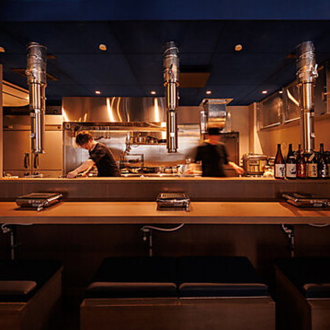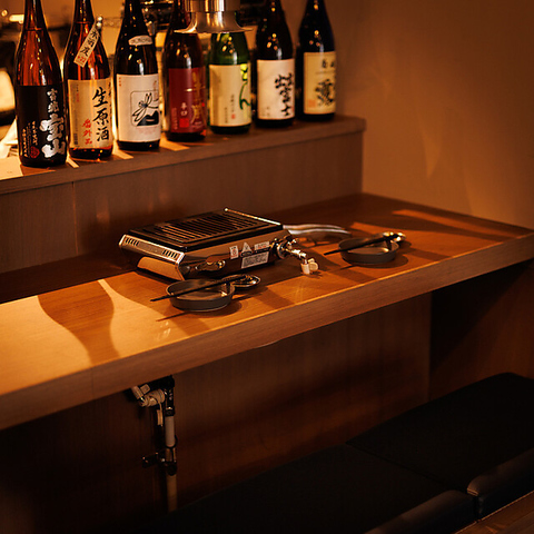 臨場感あふれるカウンター席では、焼き台を囲んでお一人様でも気軽に楽しめます◎月替わりの日本酒や焼酎も