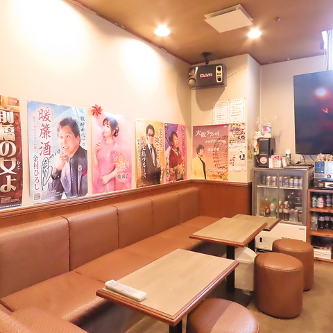 【昭和レトロが今池に!】昭和レトロな雰囲気が漂うカラオケバーで、懐かしさと楽しさを満喫♪店内には75インチの大型モニターを設置しており、迫力ある映像と音でカラオケがさらに盛り上がる!仲間との飲み会や二次会にもぴったりの空間です。