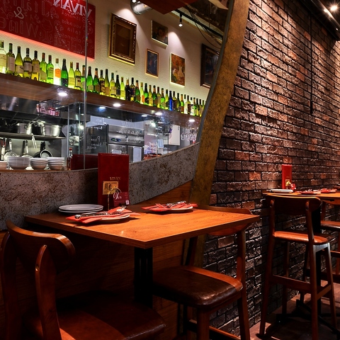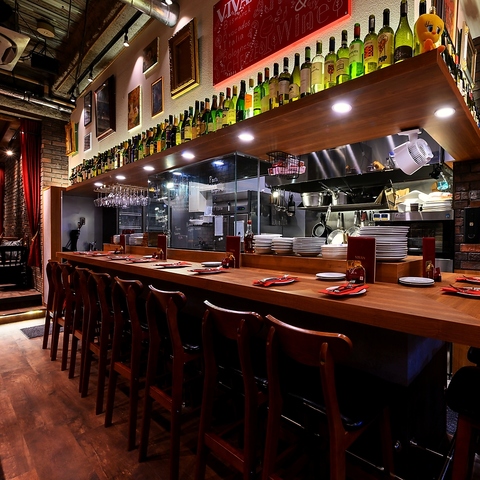 イタリアの場末のバールを思わせる店内。壁に飾られる絵画や小物がアートモダンな空間へ引き締めます。カウンターやテーブル席をご用意しております。