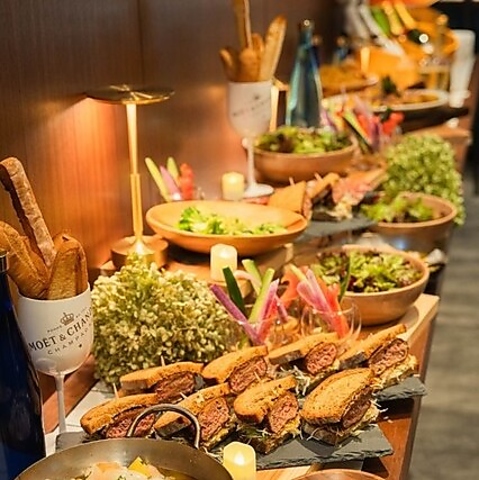 豪華なビュッフェで会を彩ります♪貸切は立食50名様、着席では40名様まで対応可能!